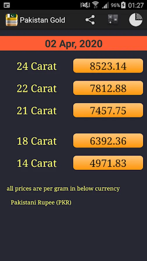 یہ پروگرام پاکستان کے شہروں میں مقامی سونے کی قیمت فراہم کرتا ہے.