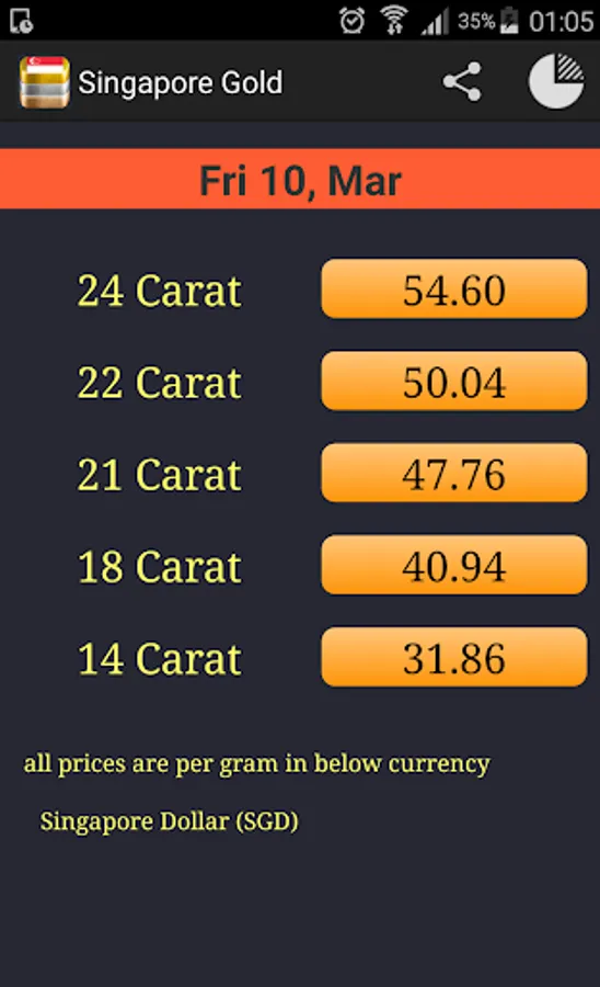 This app provides local gold price in Singapore. Internet connection is required to run this app.