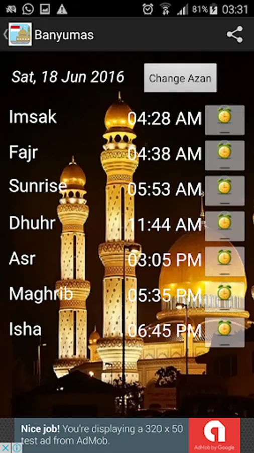★ Imsak, Fajr, Shurooq, Dhuhr, Asr, Maghrib and Isha prayers