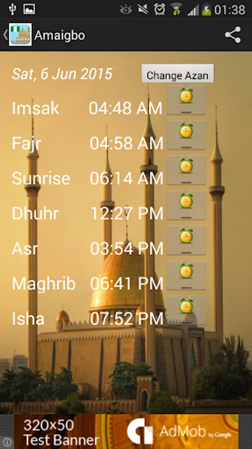 This app provides daily prayer timings for Nigeria along with prayer reminders/alarms and facebook/twitter sharing.