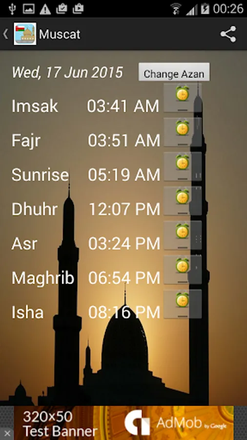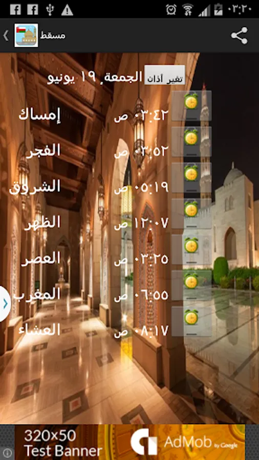 This app provides daily prayer timings for Oman along with below features