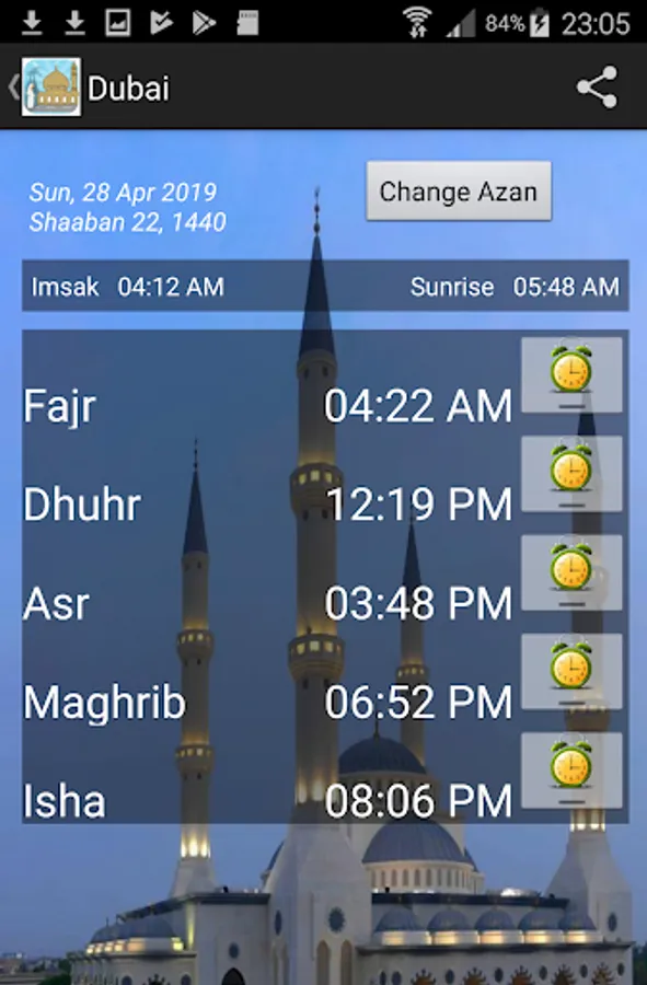 This app provides daily prayer timings for United Arab Emirates along with below features