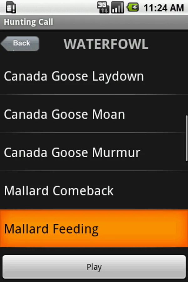 Waterfowl: Bufhead duck, Canada goose, Greylag goose, Mallard, Pintail duck, Snow goose, Teal, Widgeon, Wood duck | cluck, greeting, hail, laydown, moan, feeding, comeback ...