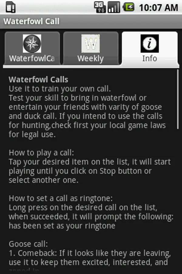 Waterfowl call is a handy app with a variety of high quality waterfowl hunting calls, added Solunar phase and rating as a bonus. Get the latest and greatest waterfowl hunting call and harvest a productive season. Or use it to goof around with your friends. You can also set your favorite waterfowl sound to your ringtone and hear them calling any time.
