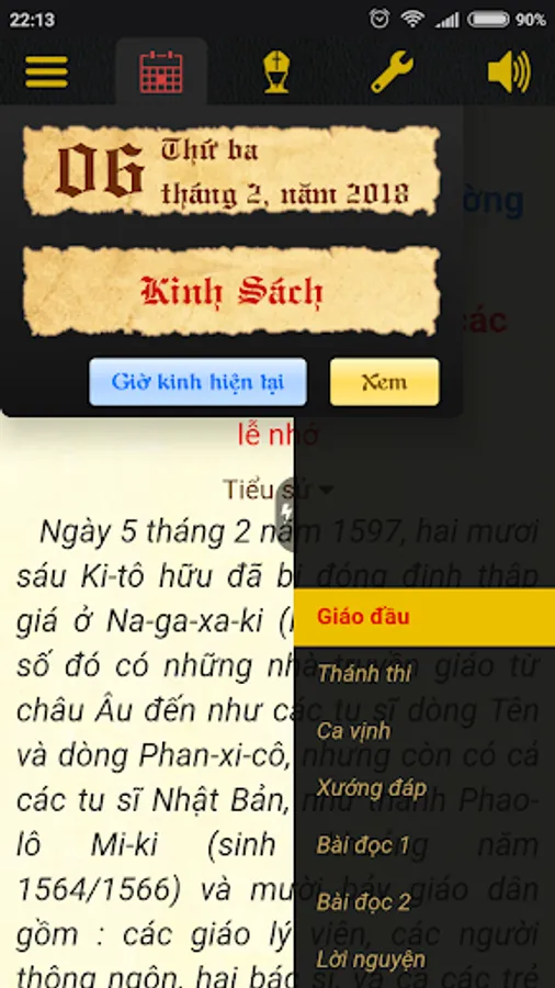 - Automatically change the contents can choose as early teaching psalm or hymn of the evening, ...