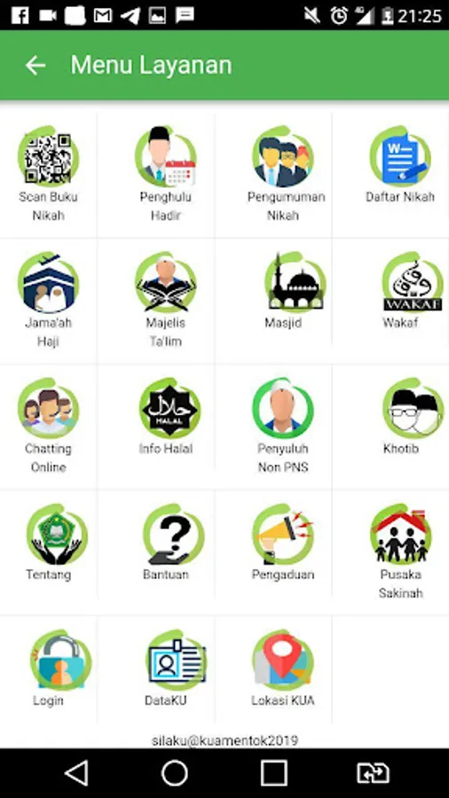 KUA Service Information System Integrated Office of Religious Affairs in Muntok District, Kab. West Bangka Kep. Bangka Belitung, abbreviated as SILAKU, is an android-based service application aimed at KUA service users and KUA officers themselves.