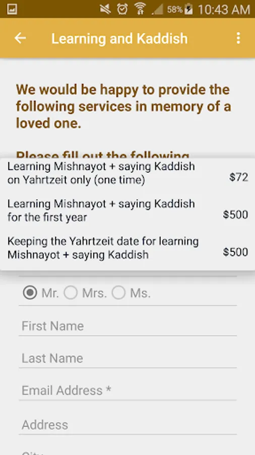 The Rabi Meir app is here for you when you need it, tracking important dates and allowing you to give on the go. Set up reminders and never forget a birthday, yahrzeit or yizkor pledge again. Do you only know the secular date? No problem! The Rabi Meir app will convert it to the corresponding date on the Jewish calendar and notify you annually when it’s coming up.