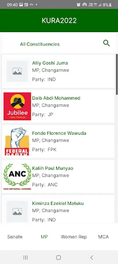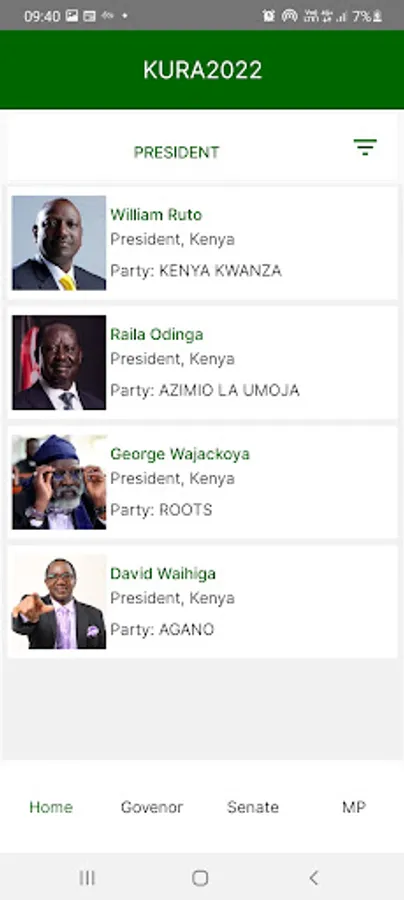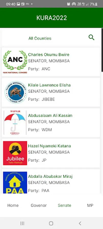 Kura2022 gives you a list of all candidates categorized by County, Sub-county, Ward. Y