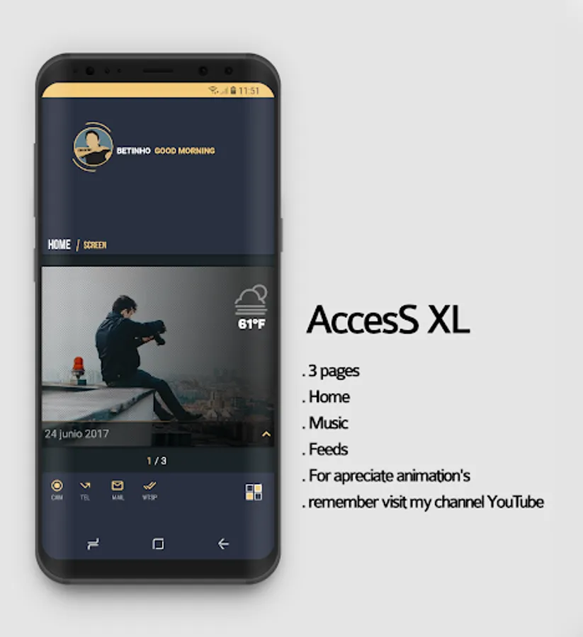 If you need any specification please contact me, remember that you 'need klwp pro, some launcher, I use Nova, but you can use the one of your liking.