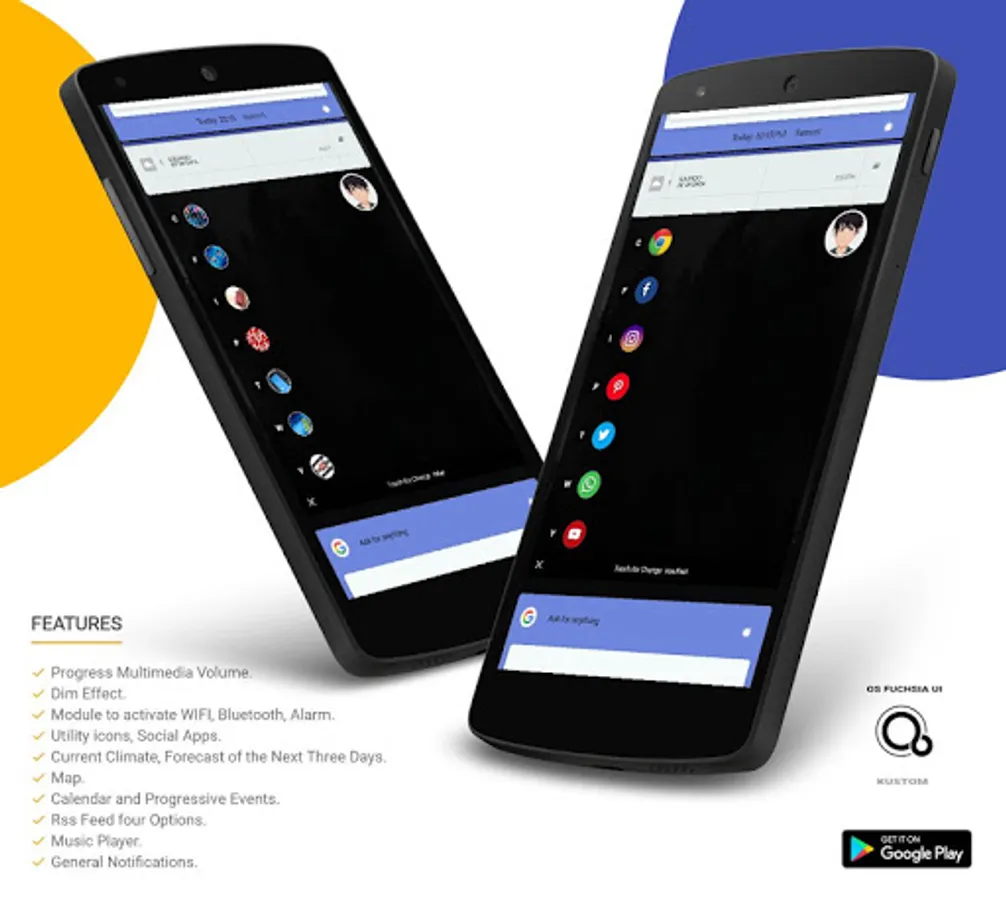 Application inspired by #Fuchsia OS by Google, made in a Klwp theme to personalize your Smartphone. "For 16: 9 format"