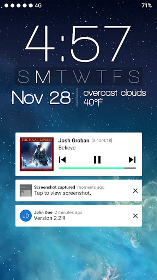 Are your fingers tired of swiping down the notification panel at the top of the screen? No more! With Notification Station, your notifications are where they should be, right at home! Notification Station is a theme for Kustom Live Wallpaper. You must have the pro version of KLWP in order for Notification Station to work.