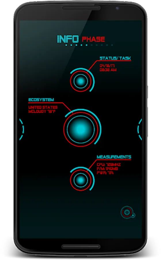 - Measurements circle - touch to open system stats screen