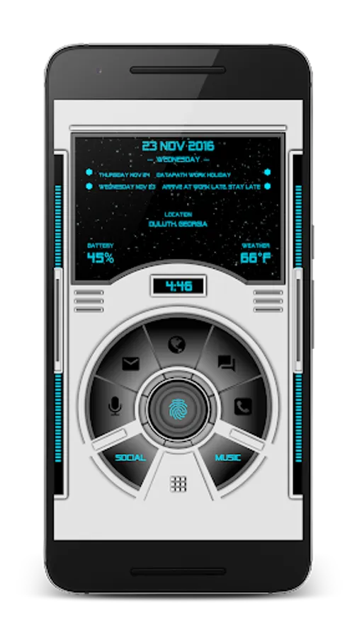 - Finger print- Opens daily info and app grid