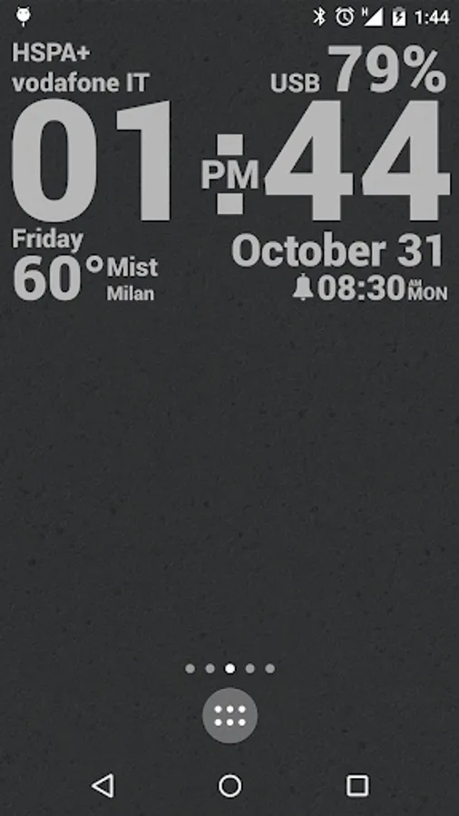- A huge amount of data to display such as: date, time, battery (with duration estimation), calendar, astronomy (sunrise, sunset, illumination, stardate), CPU speed, memory, countdowns, WiFi and cellular status, traffic info, next alarm, location, moving speed, rom/device info and much more)