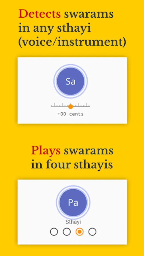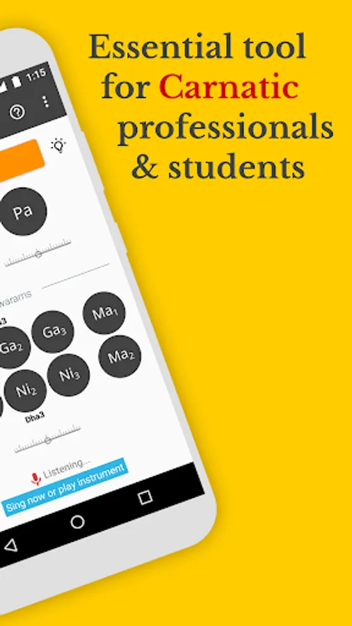 How perfect is your singing or playing of swara sthanas? Sing or Play and this app will instantly show the swaram and your accuracy. The app also provides reference tones that are clear and mathematically accurate for Carnatic music.