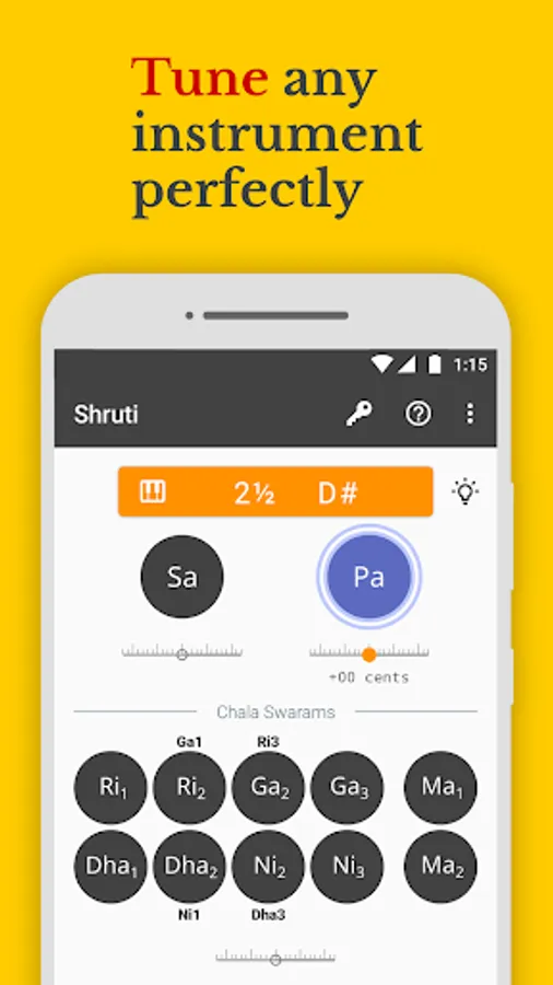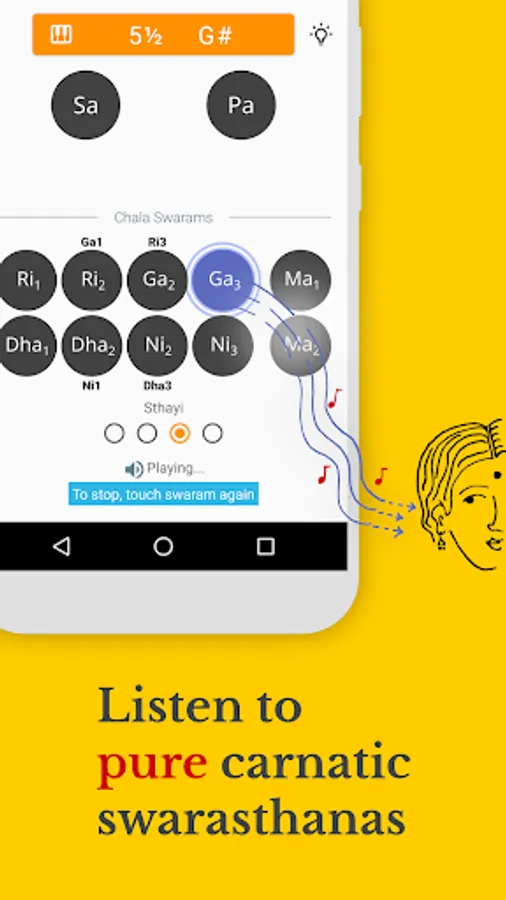 ★ You can use the reference sound provided by the app to get yourself started in your shruti.