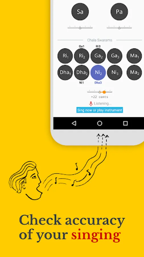 ★ The app recognizes the swarams when you sing. So you can sing and know what swarams you're singing.