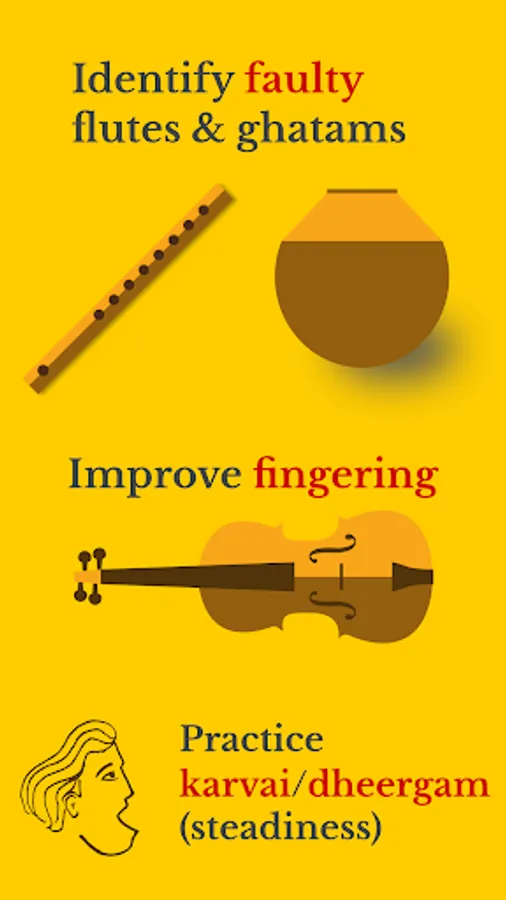 ★ You can tune any instrument accurately: Violin, Veena, Mridangam, Mandolin, Tambura, Chitravina, Guitar, etc.