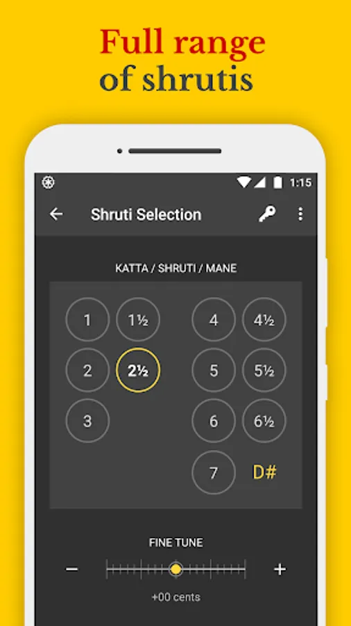 ★ Fine-tuning of kattai/shruti/mane. This is useful to match tambura drone accurately to shruti of instruments which cannot be tuned, such as flute, nadhaswaram, or ghatam.