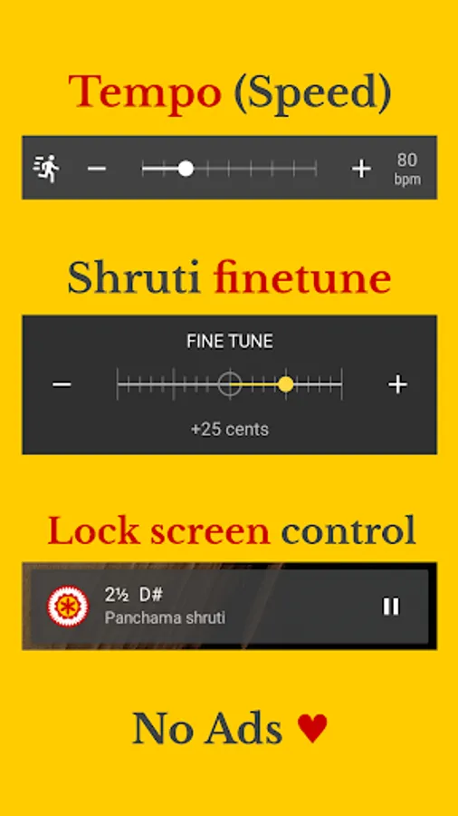 ★ Activate "Do Not Disturb" mode, if available on your device. This prevents disturbances due to phone calls or notifications. With this, you can use Pocket Shruti Box even for concerts or meditation.