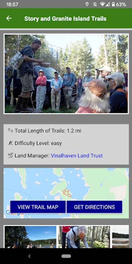 The Home Screen shows all trail systems that are available. Tap the image for more details. From the Details Screen you can either get driving directions to the trail or open the respective trails map.