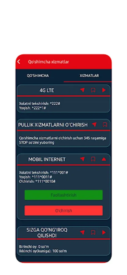- Uzmobile qo'shimcha xizmatlar