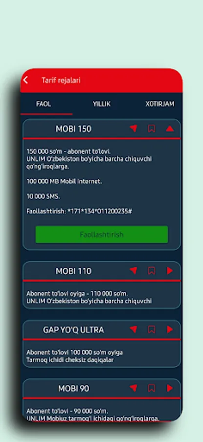 - Mobiuz tariflar
