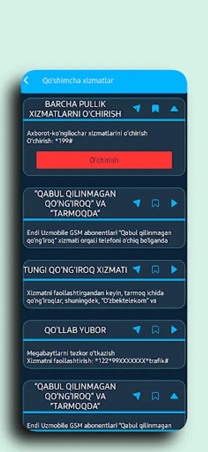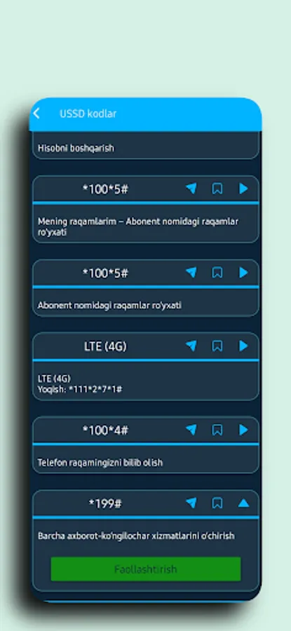 - Barcha siz uchun kerakli USSD Kodlar