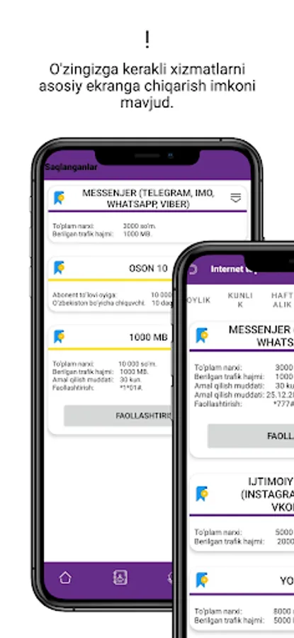 ✭ Интернет, смс ва возвозли пакетларни фаоллаштириш