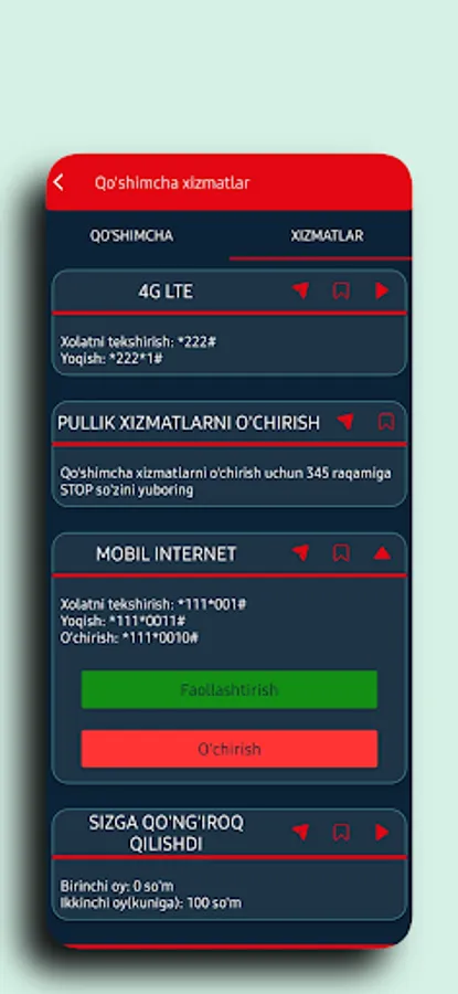 Mobiuz (UMS) USSD kodlar - ilovasi tariflar, internet, SMS, Daqiqa va qo'shimcha xizmatlardan foydalanishingiz mumkin.