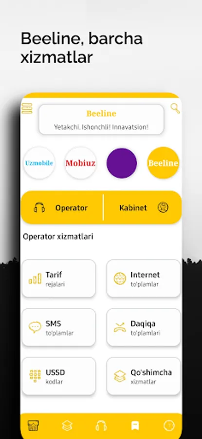 Beeline Ussd kodlar va qo'shimcha xizmatlar mavjud(Barcha pullik xizmatlarni o'chirish,RESTART, 4Gni yoqish,Balansni tekshirish va boshqalar)