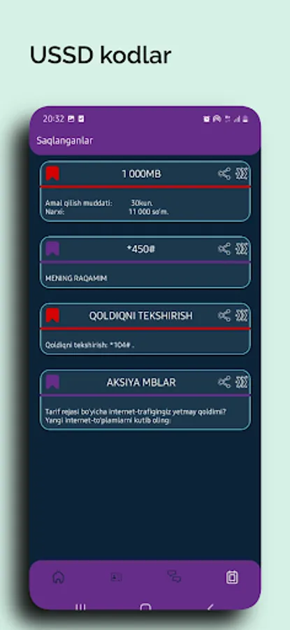 1. USSD Kodlar Ro'yxati.