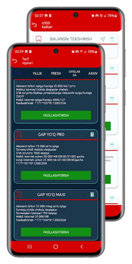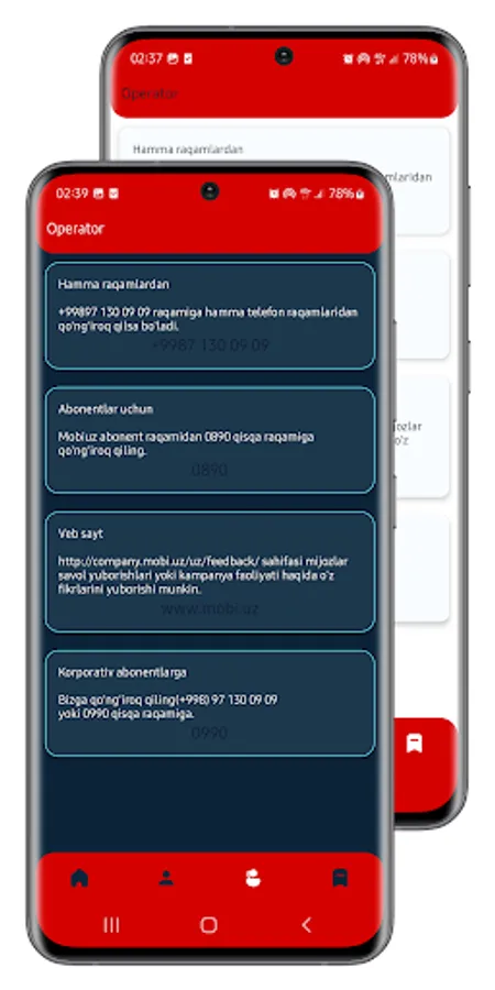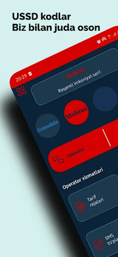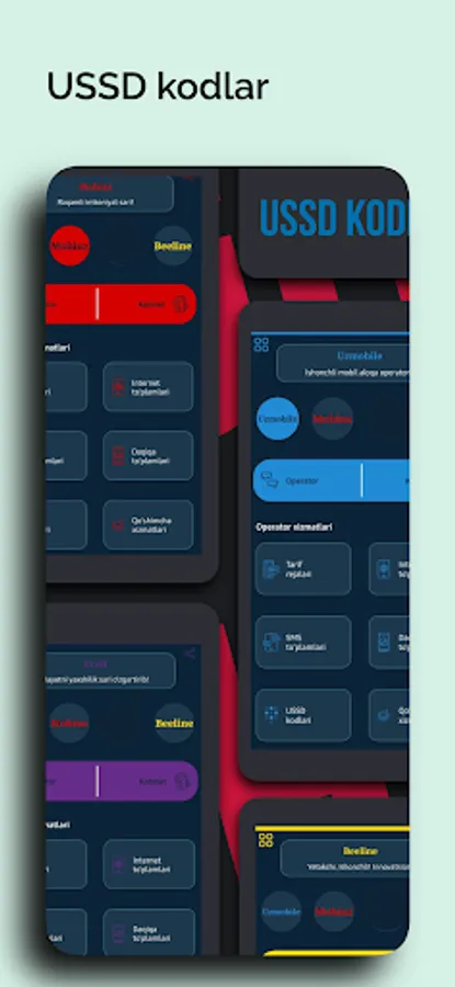 Mobil Xizmatlar va Kodlar: Ushbu qism sizga mobil operatorning taklif etgan barcha xizmatlarini, USSD kodlarini va tariflarni osonlik bilan taqdim etadi. Bu, mobil telefoningizni o'z qaroringizda osonlik bilan boshqarish imkonini beradi.