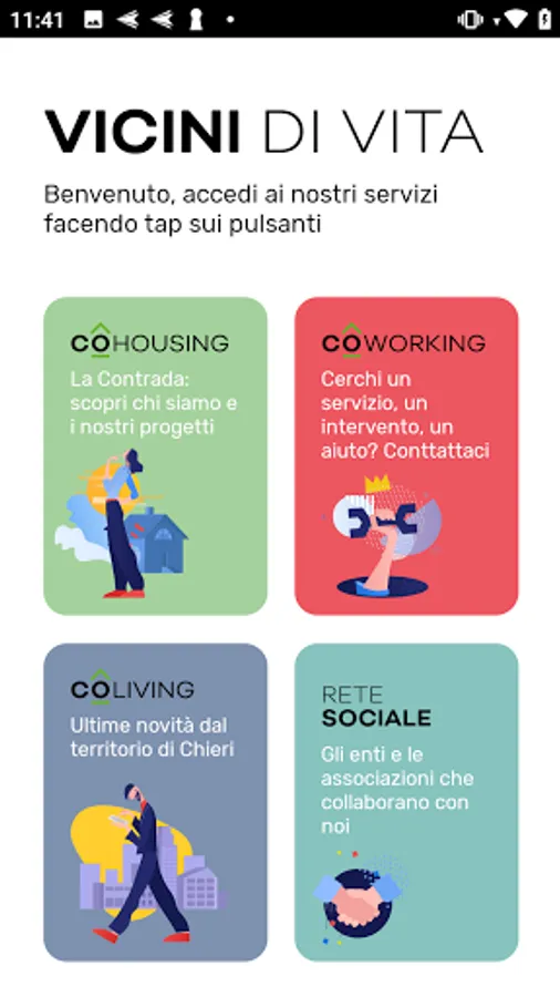 The Contrada offers the people of Chieri an app to connect citizens with the Chieri and surrounding area, with proposals for activities and services related to the "Contrada Sanpietro" and "Progetto Oliver" co-housing project.
