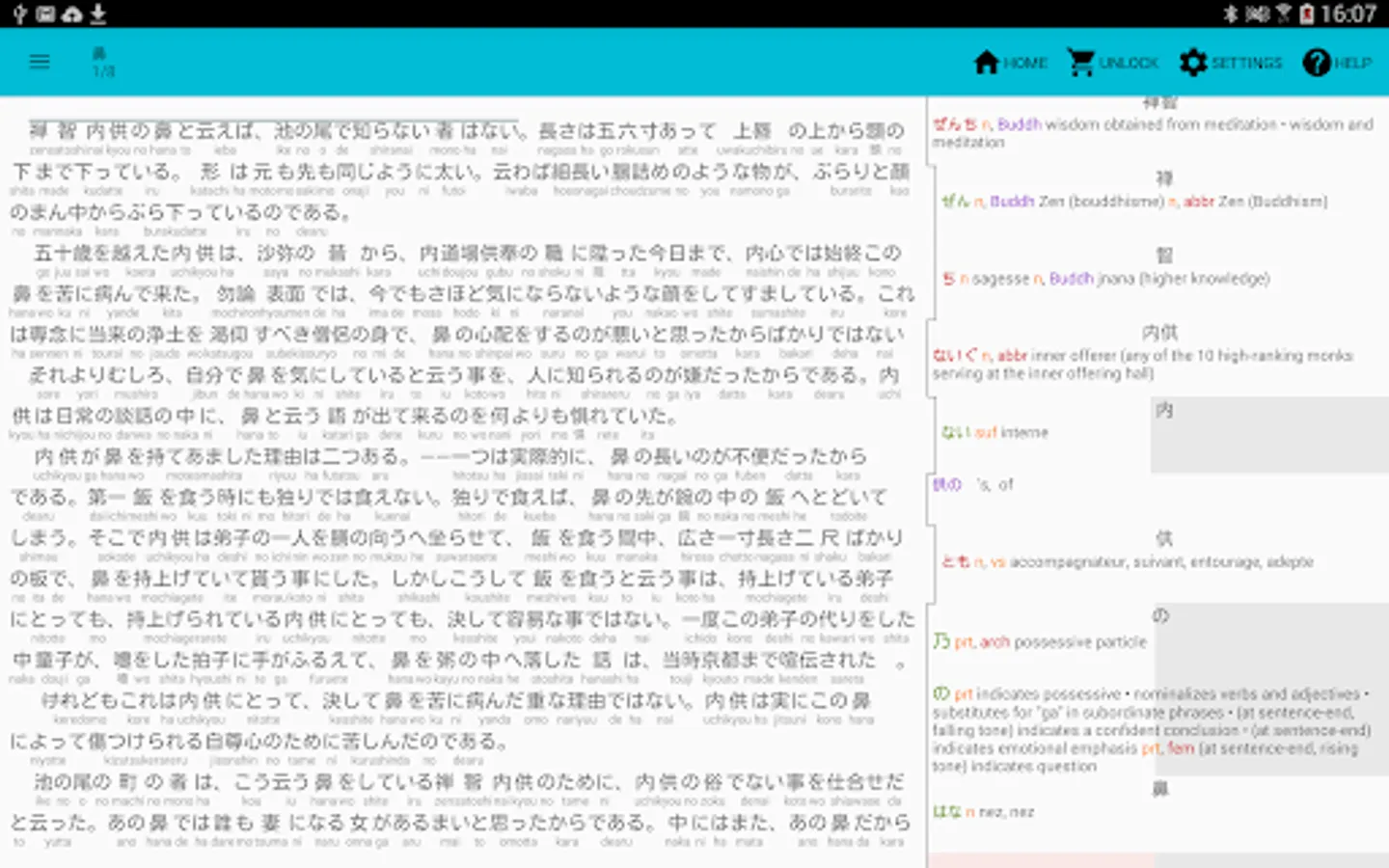 Reading a Japanese text in the Text reader gives a good measure of the benefits of unlocking the app (provided you have english in your languages, to access the grammar points)