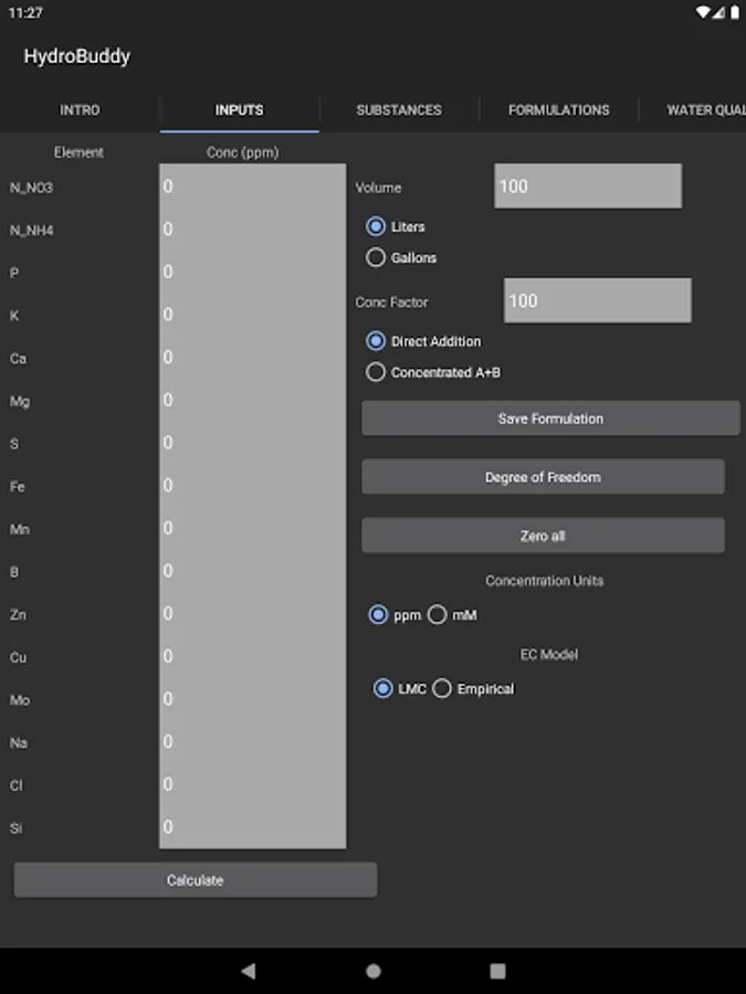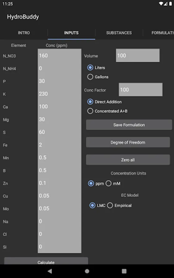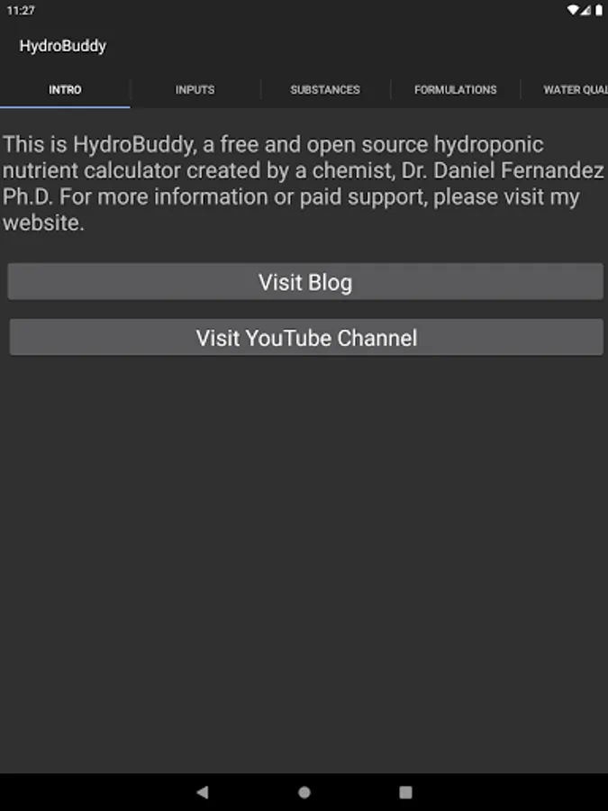 The HydroBuddy Android app is a complete recoding and port of the popular hydroponic nutrient calculator, HydroBuddy. It contains NO ADS and NO IN-APP PURCHASES.