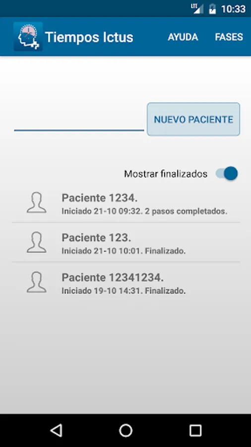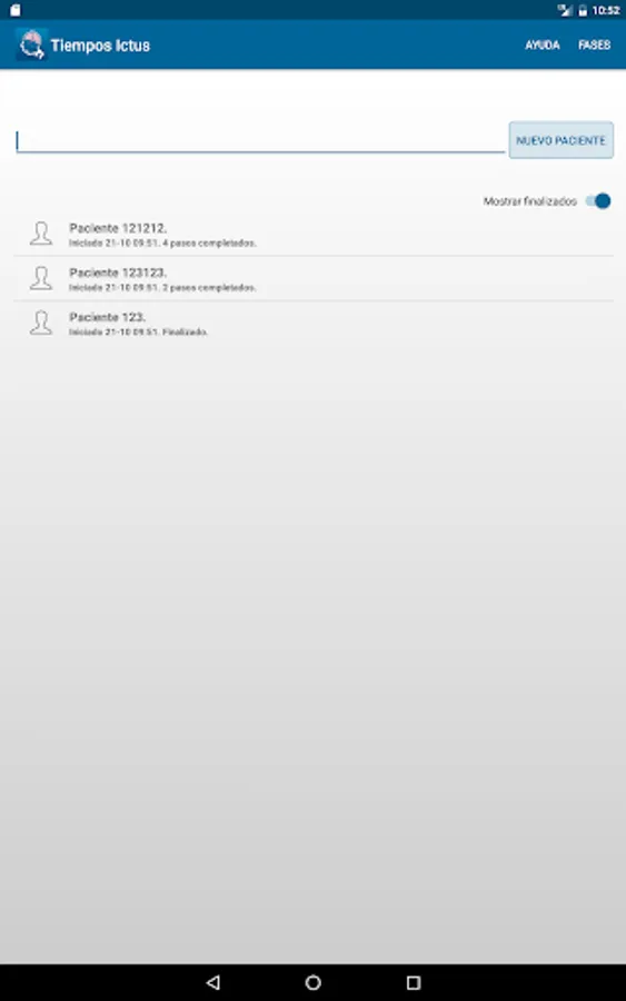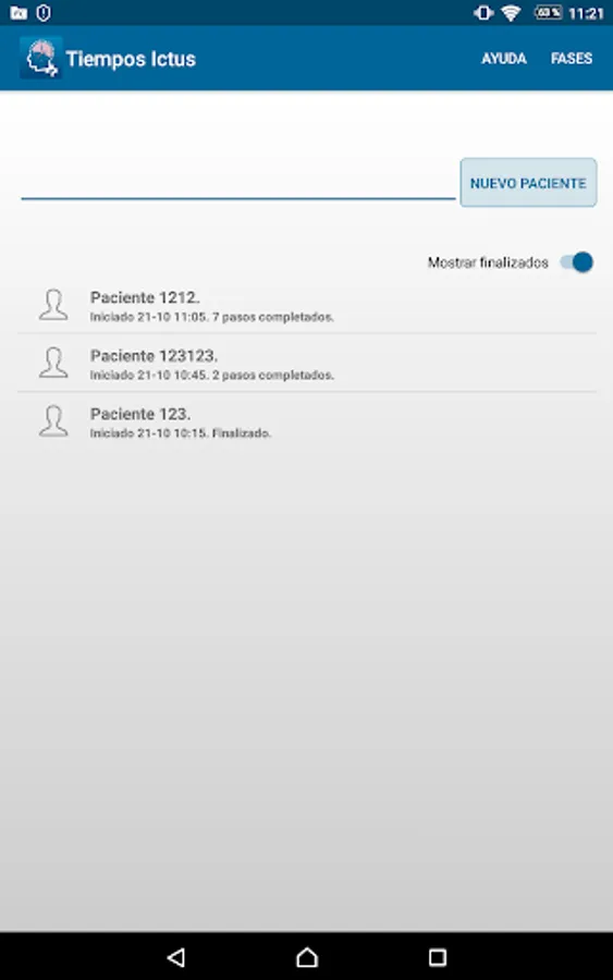 If it has been completed will appear when we activate on the main screen FINISHED SHOW tab. From there you can access the patient through its identifier name.
