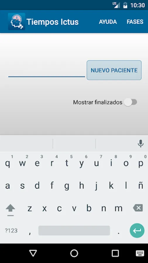 To enter patient data, from the Home screen, fill patient identification (the text is free) and gained access to new patient.