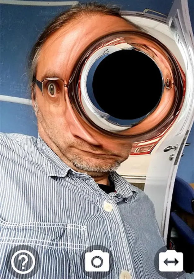 Pocket Black Hole is a simple app that allows you to play with the light-bending effect of a black hole. Take a selfie, or a photo of your friends, with a black hole!