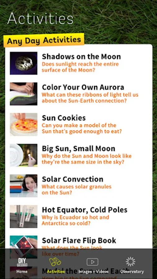 DIY Sun Science is designed to make it easy for families and educators to learn about the Sun anywhere, anytime! The app is developed by UC Berkeley’s The Lawrence Hall of Science, the Children's Creativity Museum, and Sciencenter; funded by NASA.