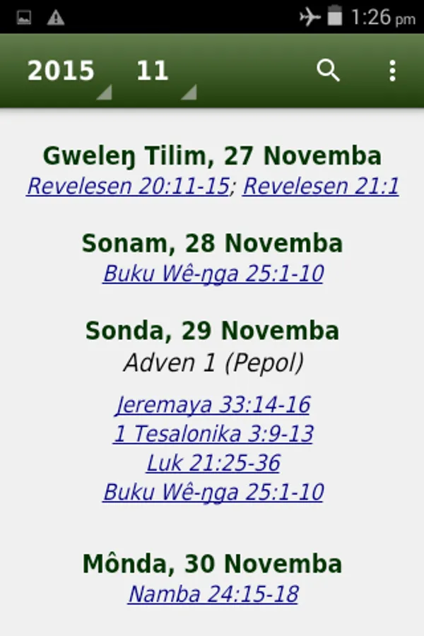 Tok Pisin Sios Kalenda 2023 with live links to Bible texts.