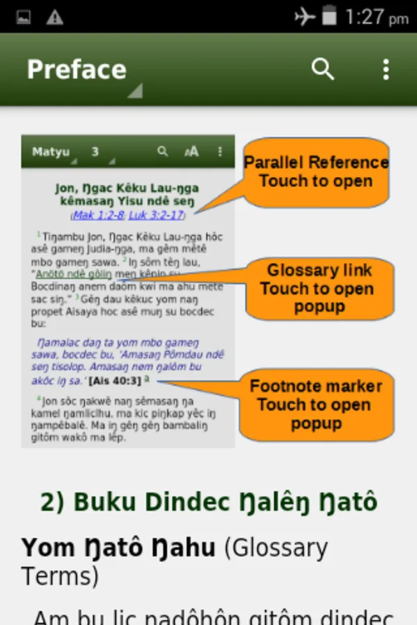 I also contains the full text of the Tok Pisin Buk Baibel and ELCPNG Sios kalenda and Amamas Waintaim lotu Book.