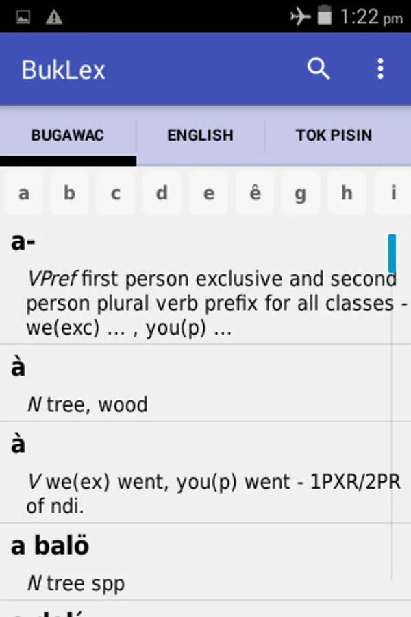 A secondary purpose is to provide a tool for the teachers of the Bukawa language in the developing Elementary school system of Papua New Guinea. Formalised literacy (reading and writing) in the Bukawa language is a relatively recent innovation, and there was no established orthography (writing system) for the language up until the 1990s, thus it is hoped that this dictionary will be a guide which will in time help to standardise the writing and spelling of the language. It is also our hope that this book will be of assistance to both mother tongue speakers of the Bukawa language who wish to delve into their language, as well as to other people who are not mother-tongue speakers, but who wish to either learn or study the language. With that purpose in mind, the dictionary has reversal listings in both English and Tok Pisin for all the Bukawa entries in the dictionary.
