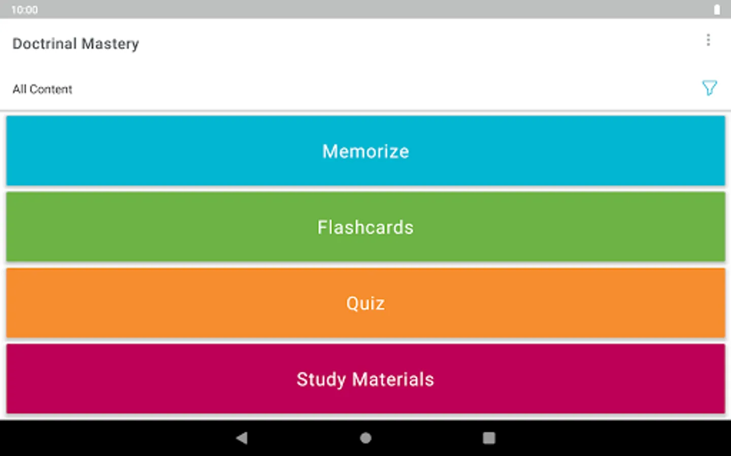 The Doctrinal Mastery app helps members of The Church of Jesus Christ of Latter-day Saints study and learn the 100 seminary doctrinal mastery passages, the Articles of Faith, and other content imported using the sharing feature within the Gospel Library app. The learning activities include memorizing, reviewing flashcards, and taking a quiz. Memorizing scriptures can provide a powerful source of inspiration in times of need.