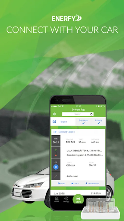 With Enerfy, you have complete control over your driving and your vehicle fleet. Skip surprises at audits with a driver's log that meets all tax requirements. With the Enerfy Plug-In, you gain access to services in the Enerfy App that among other things include:
