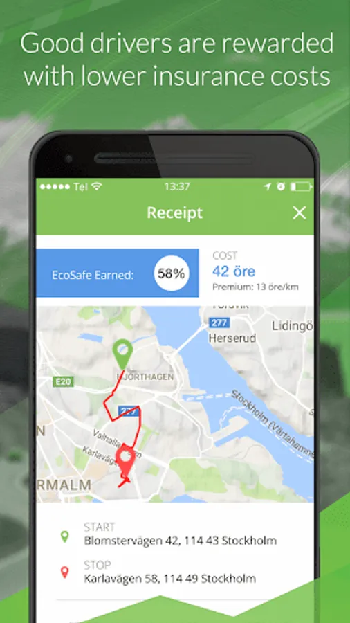 For customers based in Sweden: Enerfy offers a pay-as-you-drive car insurance where you only pay for what you drive. Additionally, if you drive well, you get rewarded with an Eco-Safe discount on your premium.
