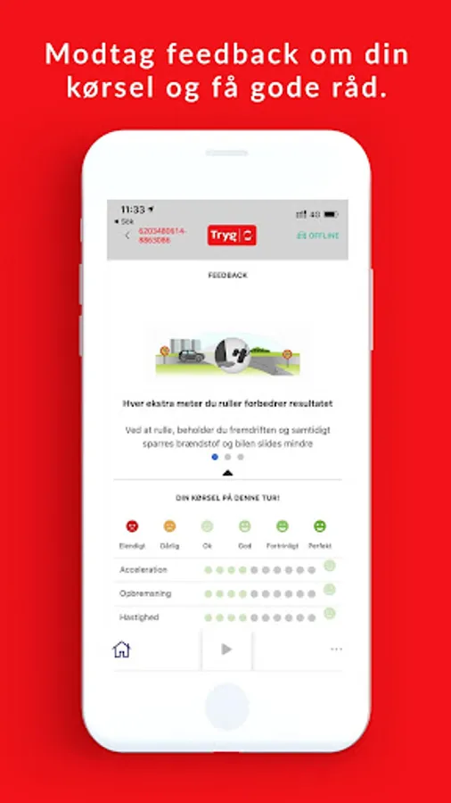 TrygDrive is an app for use together with Tryg’s car insurance – it’s your chance to earn a bonus by driving safely. Also, you get access to your own personal driving coach, offering tips on how to improve your driving skills as well as driving statistics.