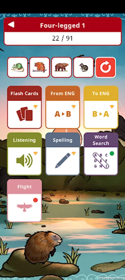 New word-search and flying bird games are great for young learners! Words that are not matched correctly are repeated until you master them. This repetition method is an effective learning strategy.