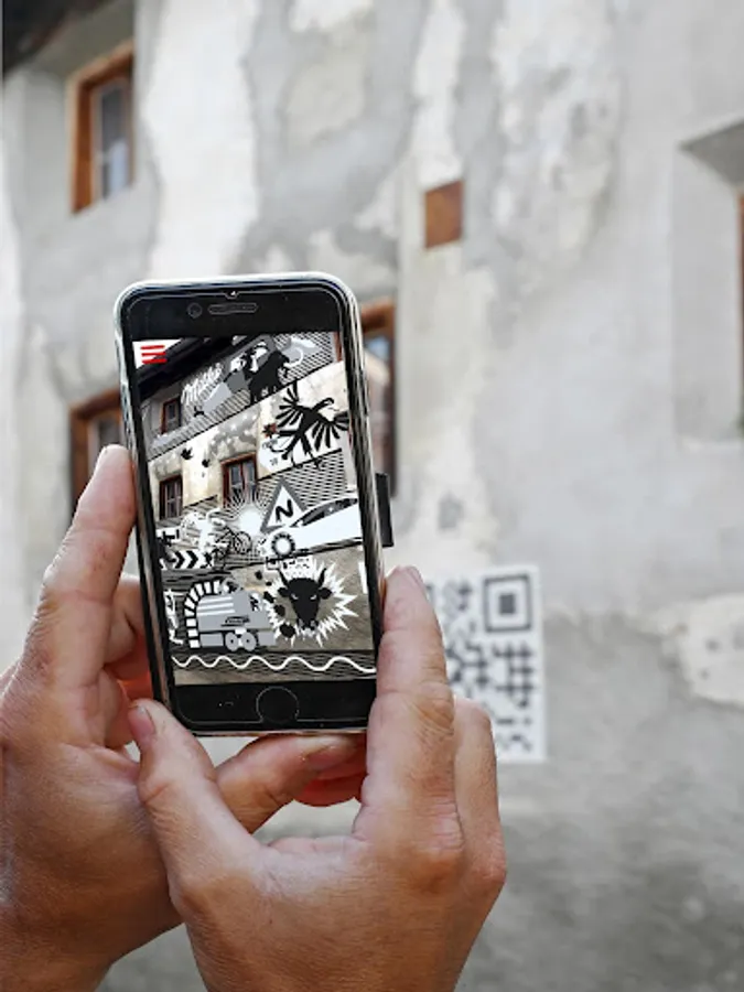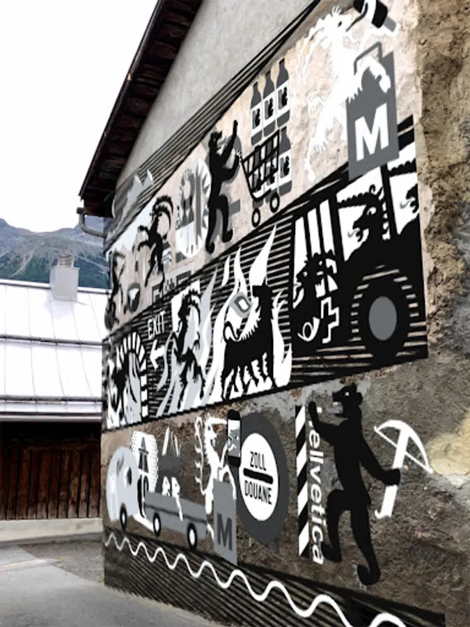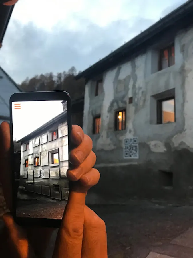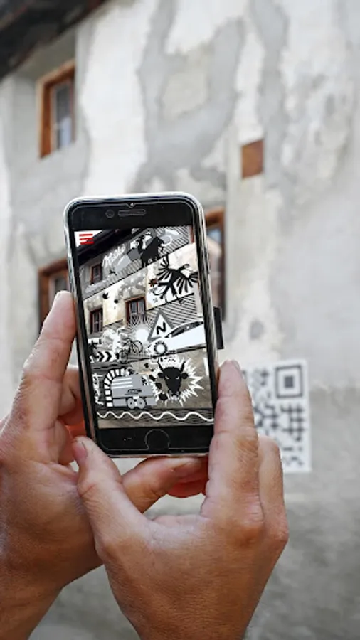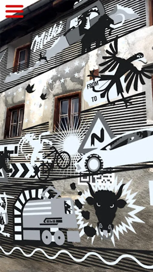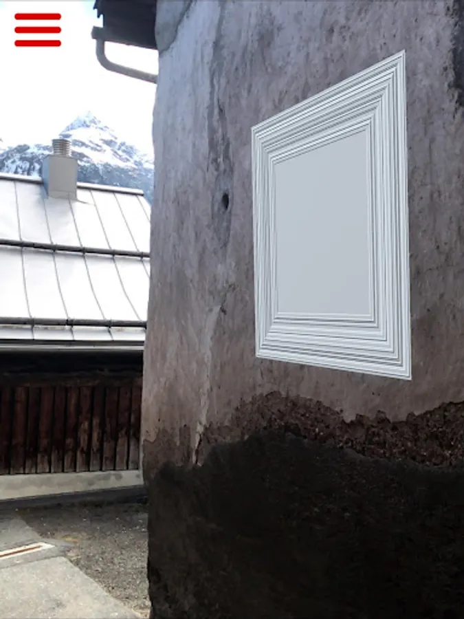 Also the app is an augmented reality exhibition platform. Biannually, artists, designers, writers, poets are invited to create a response to the regional tradition of Sgraffito in the Engadin Valley in Switzerland and add virtual content to the facade. Their virtual works will then be made public on the façade of SOMALGORS74.