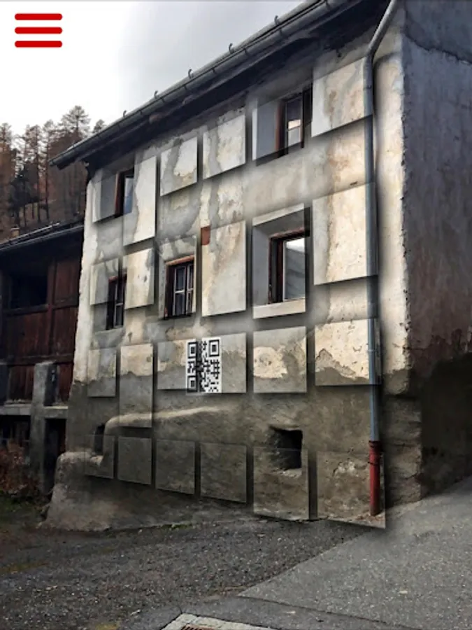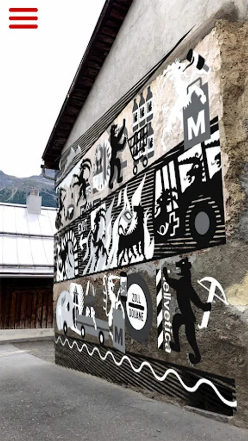 The app only works in the vicinity of cultural initiative SOMALGORS74, but can also be used to view the work through photography of the building's facade. The app is limited to audience of Switzerland only.